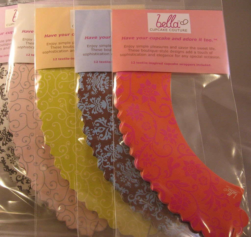Our latest contest is by our recent interviewee, Carrie Middlemiss of Bella Cupcake Couture, to win a set of their cupcake wrappers, which come packaged like this: